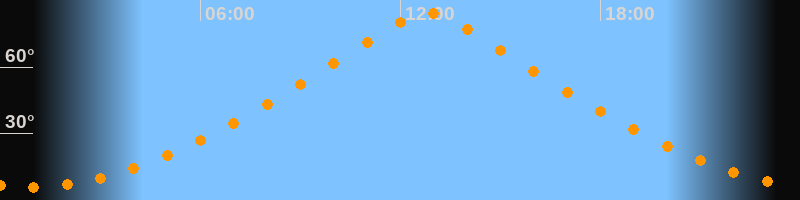 | Höchster Stand (Kulmination) | 12:48 Uhr (h = 84,5°) |