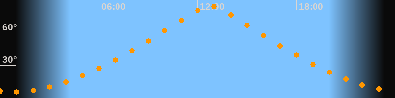 | Höchster Stand (Kulmination) | 12:44 Uhr (h = 84,5°) |