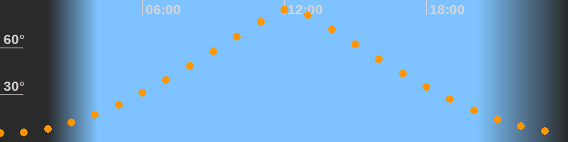 | Höchster Stand (Kulmination) | 12:13 Uhr (h = 84,5°) |