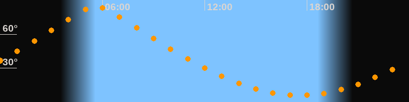 | Höchster Stand (Kulmination) | 05:36 Uhr (h = 84,5°) |