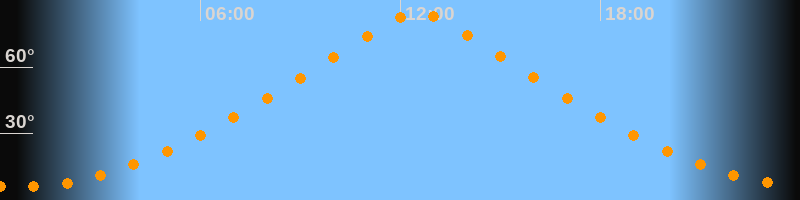 | Höchster Stand (Kulmination) | 12:30 Uhr (h = 84,5°) |