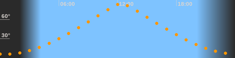 | Höchster Stand (Kulmination) | 12:22 Uhr (h = 84,5°) |