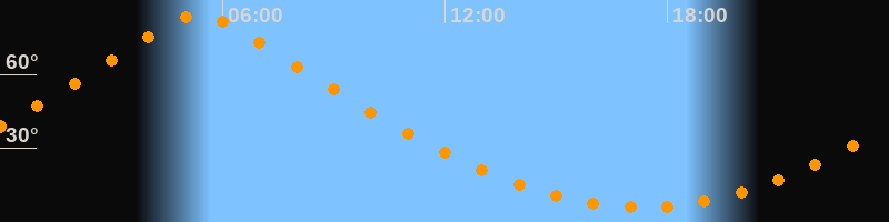 | Höchster Stand (Kulmination) | 05:21 Uhr (h = 84,5°) |