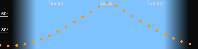 | Höchster Stand (Kulmination) | 13:06 Uhr (h = 84,5°) |