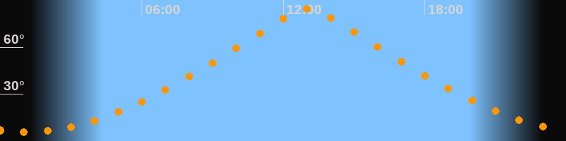 | Höchster Stand (Kulmination) | 13:02 Uhr (h = 84,5°) |