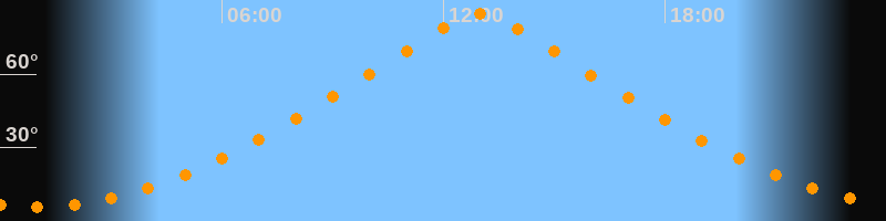| Höchster Stand (Kulmination) | 12:58 Uhr (h = 84,5°) |
