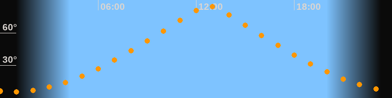 | Höchster Stand (Kulmination) | 12:46 Uhr (h = 84,5°) |