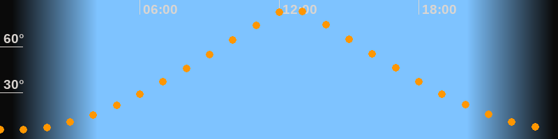 | Höchster Stand (Kulmination) | 12:31 Uhr (h = 84,5°) |
