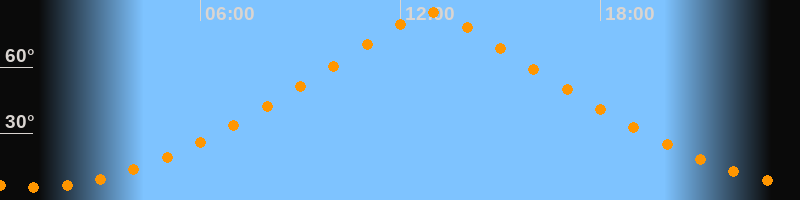 | Höchster Stand (Kulmination) | 12:55 Uhr (h = 84,5°) |