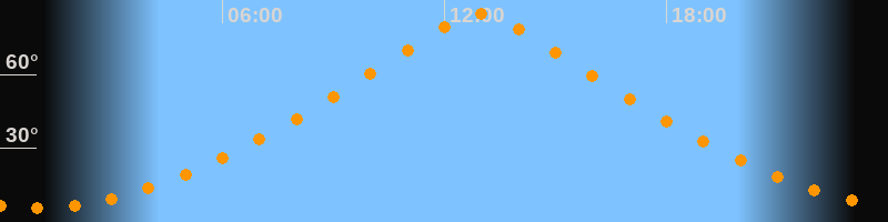 | Höchster Stand (Kulmination) | 12:56 Uhr (h = 84,5°) |