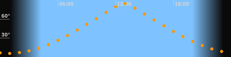 | Höchster Stand (Kulmination) | 12:52 Uhr (h = 84,5°) |