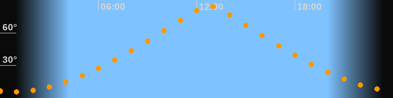 | Höchster Stand (Kulmination) | 12:44 Uhr (h = 84,5°) |