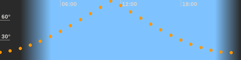 | Höchster Stand (Kulmination) | 11:08 Uhr (h = 89,7°) |