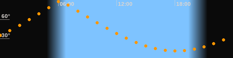 | Höchster Stand (Kulmination) | 06:13 Uhr (h = 89,7°) |