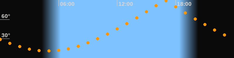 | Höchster Stand (Kulmination) | 16:54 Uhr (h = 89,7°) |