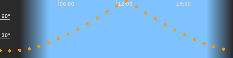 | Höchster Stand (Kulmination) | 12:55 Uhr (h = 89,7°) |