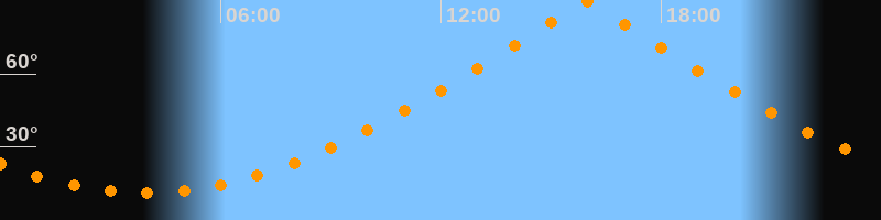 | Höchster Stand (Kulmination) | 15:57 Uhr (h = 89,7°) |