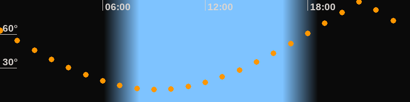 | Höchster Stand (Kulmination) | 21:07 Uhr (h = 89,7°) |