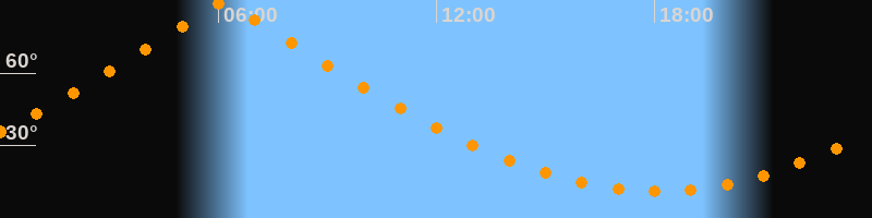 | Höchster Stand (Kulmination) | 06:08 Uhr (h = 89,7°) |