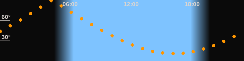 | Höchster Stand (Kulmination) | 05:06 Uhr (h = 89,7°) |