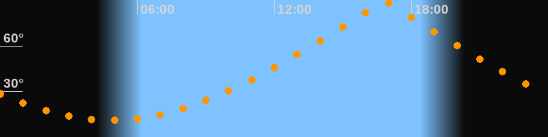 | Höchster Stand (Kulmination) | 16:49 Uhr (h = 89,7°) |