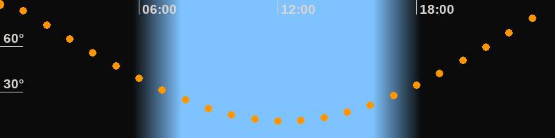 | Höchster Stand (Kulmination) | 00:14 Uhr (h = 89,7°) |