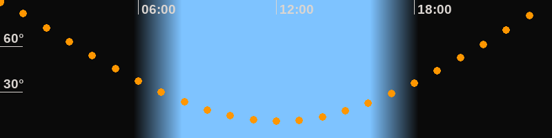 | Höchster Stand (Kulmination) | 00:03 Uhr (h = 89,7°) |