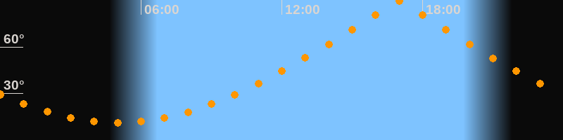 | Höchster Stand (Kulmination) | 16:59 Uhr (h = 89,7°) |