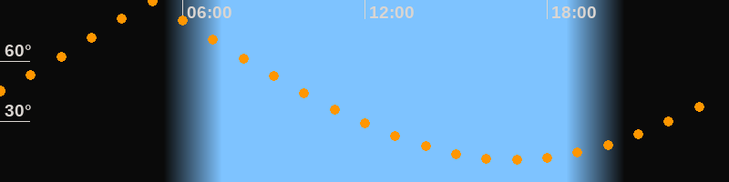 | Höchster Stand (Kulmination) | 04:57 Uhr (h = 89,7°) |