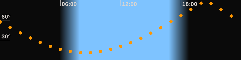 | Höchster Stand (Kulmination) | 20:28 Uhr (h = 89,7°) |