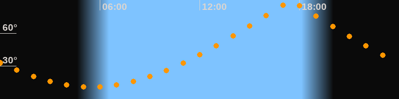 | Höchster Stand (Kulmination) | 17:28 Uhr (h = 89,7°) |