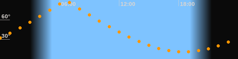 | Höchster Stand (Kulmination) | 06:36 Uhr (h = 89,7°) |