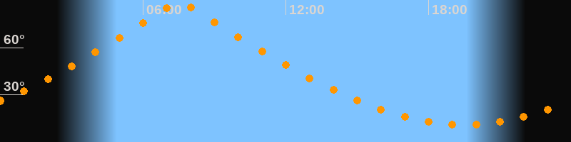 | Höchster Stand (Kulmination) | 07:32 Uhr (h = 89,7°) |