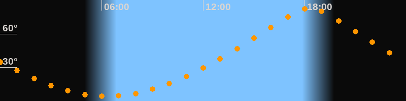 | Höchster Stand (Kulmination) | 18:18 Uhr (h = 83°) |