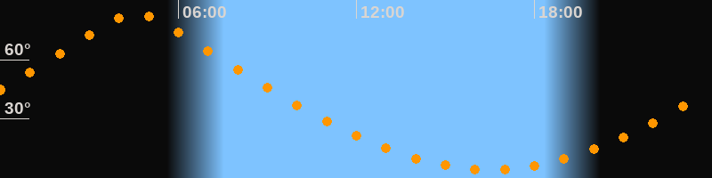 | Höchster Stand (Kulmination) | 04:34 Uhr (h = 83°) |