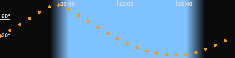 | Höchster Stand (Kulmination) | 05:44 Uhr (h = 83°) |