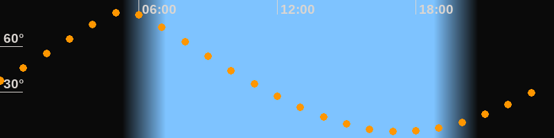 | Höchster Stand (Kulmination) | 05:23 Uhr (h = 83°) |