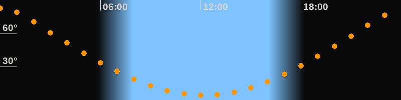 | Höchster Stand (Kulmination) | 00:08 Uhr (h = 83°) |