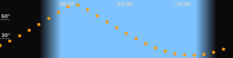 | Höchster Stand (Kulmination) | 07:43 Uhr (h = 83°) |