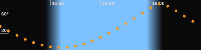 | Höchster Stand (Kulmination) | 19:12 Uhr (h = 83°) |