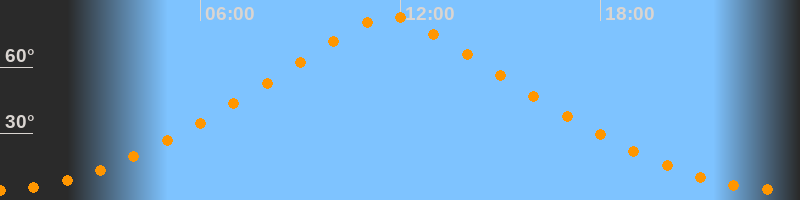 | Höchster Stand (Kulmination) | 11:40 Uhr (h = 83°) |