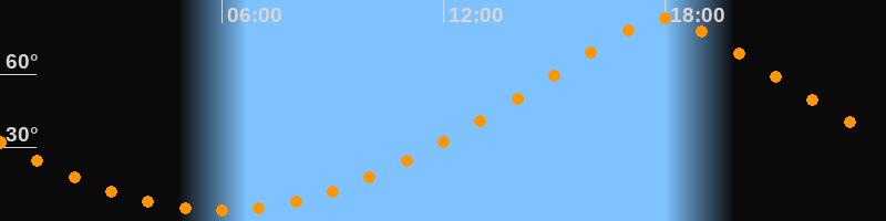 | Höchster Stand (Kulmination) | 17:58 Uhr (h = 83°) |