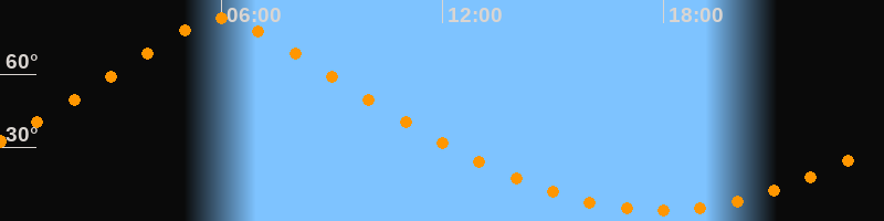 | Höchster Stand (Kulmination) | 05:59 Uhr (h = 83°) |