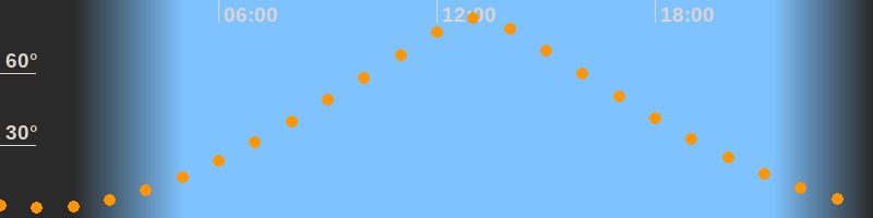 | Höchster Stand (Kulmination) | 13:05 Uhr (h = 83°) |