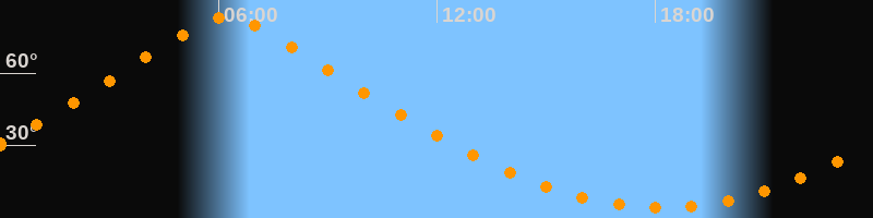 | Höchster Stand (Kulmination) | 06:13 Uhr (h = 83°) |