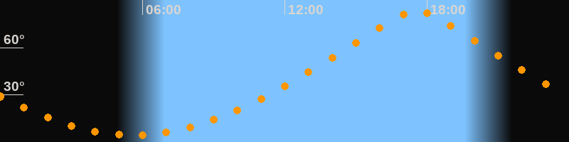 | Höchster Stand (Kulmination) | 17:34 Uhr (h = 83°) |