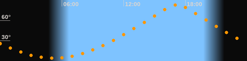 | Höchster Stand (Kulmination) | 17:11 Uhr (h = 83°) |