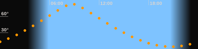 | Höchster Stand (Kulmination) | 08:44 Uhr (h = 83°) |