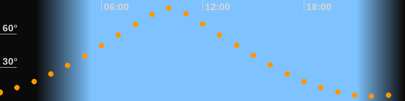 | Höchster Stand (Kulmination) | 10:00 Uhr (h = 83°) |