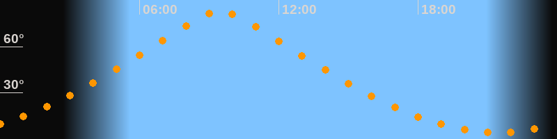 | Höchster Stand (Kulmination) | 09:29 Uhr (h = 83°) |